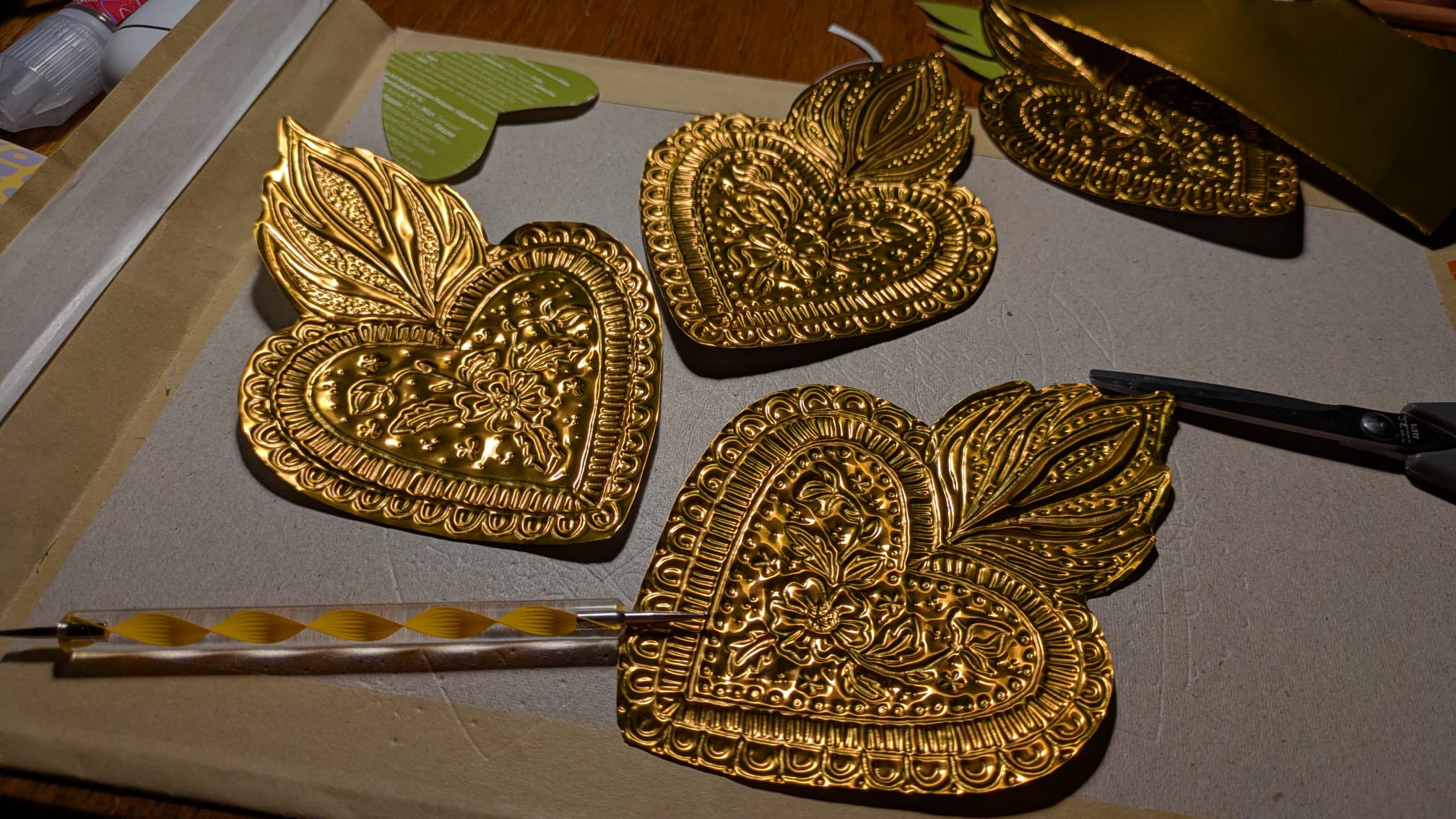 Make a variety of decorations for your homestead, using thin metallic foil and tools. Lots of examples to work from, and lots of help on hand.